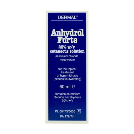 Anhydrol Forte Roll-on is a topical solution designed to treat excessive sweating, also known as hyperhidrosis. It comes in a convenient roll-on form, making it easy to apply directly to the affected areas. The active ingredient, aluminium chloride hexahydrate, helps reduce sweating by blocking the sweat glands. This medication is particularly useful for people who experience excessive sweating in areas such as the underarms, hands, and feet.