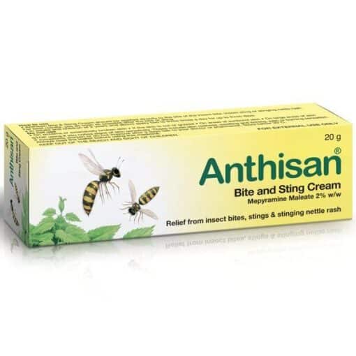 Anthisan Bite and Sting Cream contains mepyramine maleate 2% w/w, an antihistamine that helps relieve pain, itching, and inflammation caused by insect bites, stings, and nettle rash.
