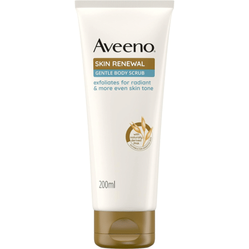 Aveeno Skin Renewal Gentle Body Scrub is a dermatologically tested exfoliating body scrub designed to gently renew rough, dry and bumpy skin. Formulated with prebiotic oat, naturally‑derived PHA (polyhydroxy acid) and niacinamide, this wash‑off scrub works to exfoliate dead skin cells while supporting the skin’s natural microbiome and boosting brightness and smoothness. Regular use helps improve skin tone and texture, leaving your skin feeling softer and visibly renewed.