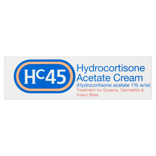 HC45 Hydrocortisone Acetate Cream contains hydrocortisone acetate 1% w/w, a mild corticosteroid used to reduce inflammation and soothe irritated skin. It is specially formulated to provide relief from the symptoms of various skin conditions, including mild to moderate eczema, dermatitis, and allergic reactions to insect bites or stings. By altering the body’s inflammatory response, HC45 helps to calm redness, swelling, and itching for up to 12 hours.HC45 Hydrocortisone Cream is suitable for adults and children aged 10 years and over: