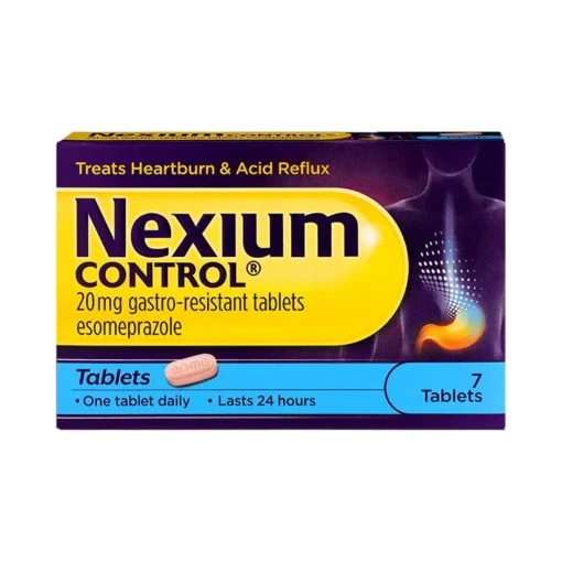 Nexium Control contains 20mg of esomeprazole, a proton pump inhibitor (PPI) that works by reducing excess stomach acid. It is used for the short-term treatment of reflux symptoms such as heartburn and acid regurgitation. These symptoms often appear after eating, when lying down, or at night. Nexium Control helps reduce acid production at the source, providing lasting relief for up to 24 hours.