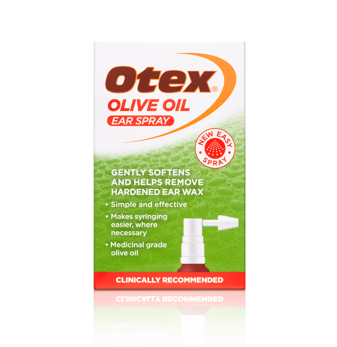 Otex Olive Oil Ear Spray contains medical grade olive oil, designed to gently soften and lubricate hardened ear wax. It allows ear wax to clear naturally and may help avoid the need for syringing or microsuction. The medicinal-grade olive oil is specially refined for safe and effective use inside the ear, providing a convenient and clinically recommended option for ear care.