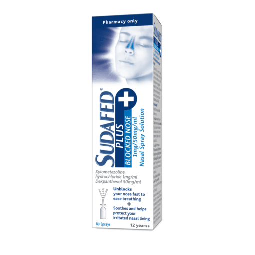 Sudafed Plus Blocked Nose Spray is suitable for adults and children aged 12 years and over and comes in a 10 ml bottle providing approximately 80 sprays.